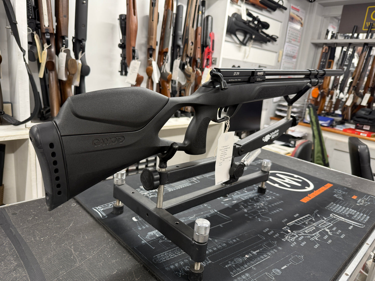 ALL SECOND HAND GUNS COME WITH 3 MONTHS WARRANTY Excellent condition and fully tested Gamo GX250 .177. The gun features an ambidextrous black synthetic stock with right hand bolt. It has been fitted with a moderator and comes supplied with a magazine and a filling adapter. |