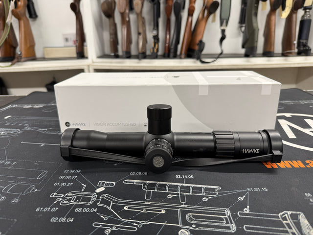 Second hand Hawke Airmax 30 Touch 3-12x32. Comes with the original box, side wheel, eye cup and a set of bikini covers. |