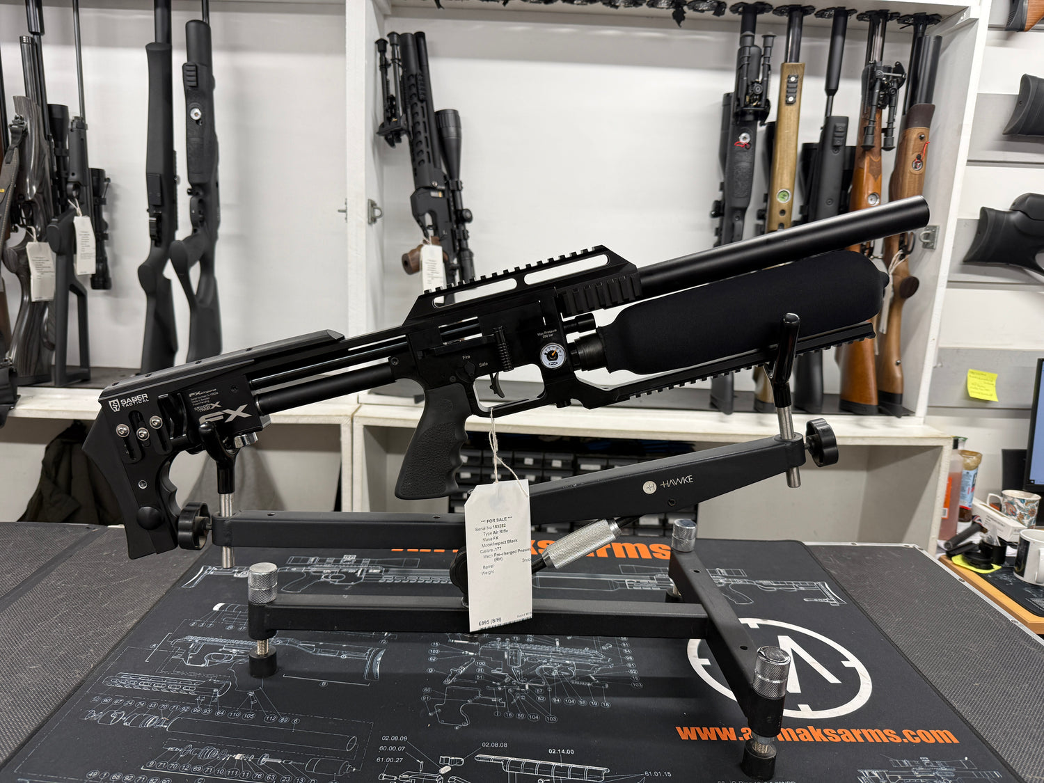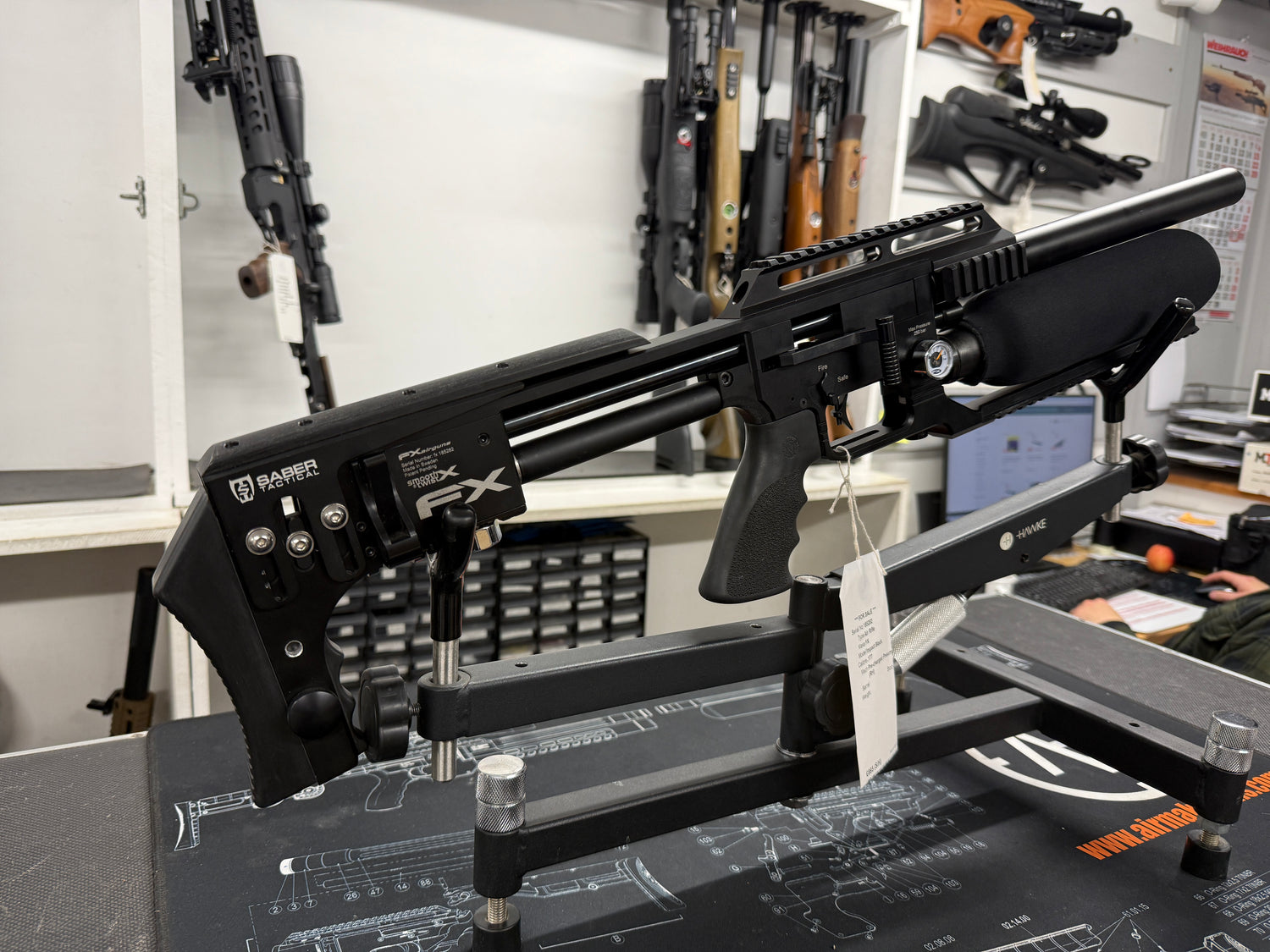 ALL SECOND HAND AIR RIFLES COME WITH 3 MONTHS WARRANTY Great condition and fully tested second hand FX Impact X in 177 calibre. The gun features a right handed stock with right hand side lever. It has a telescopic shroud and has been fitted with a Saber Tactical cheek riser and extended under rail. Supplied with the rifle is a magazine and a fill adapter. |