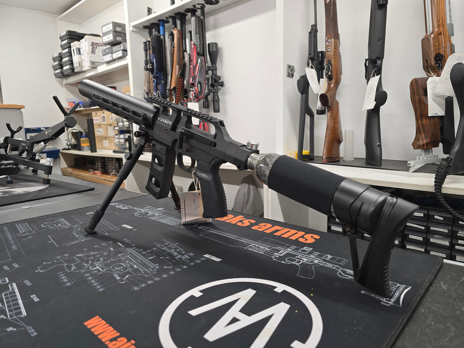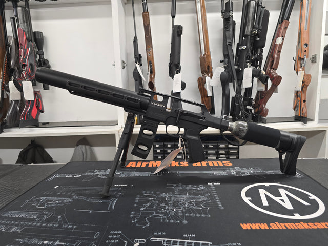 ALL SECOND HAND AIR RIFLES COME WITH 3 MONTHS WARRANTY Good condition and fully tested second hand AGT Vixen Short .177. The gun features an ambidextrous black synthetic stock with left hand lever. Supplied with the gun is a magazine and filling adapter, as well as a bipod and magazine holder. |