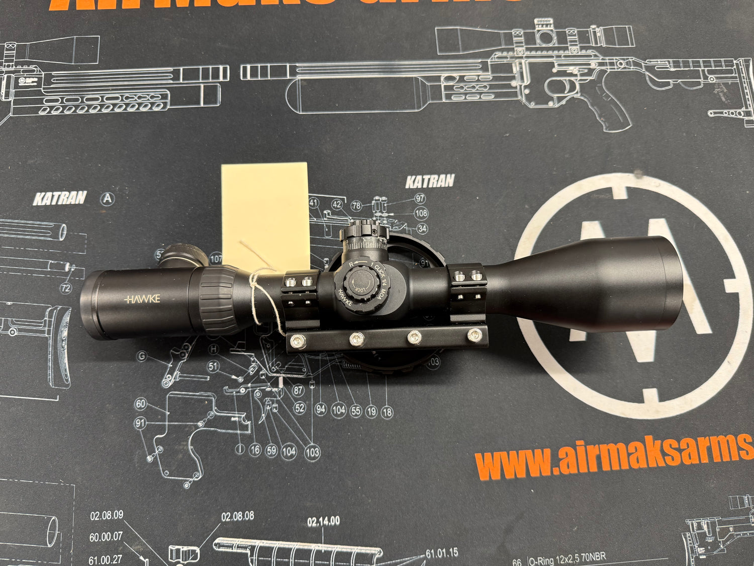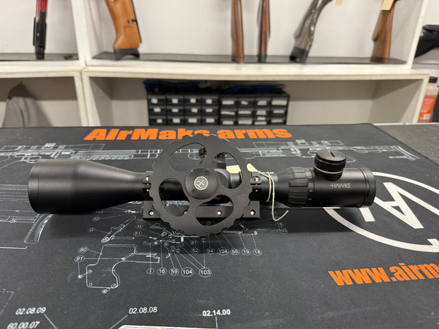 Second hand Hawke Airmax 30 3-12X50. The scope comes supplied with a one piece dovetail mount and a side wheel. |