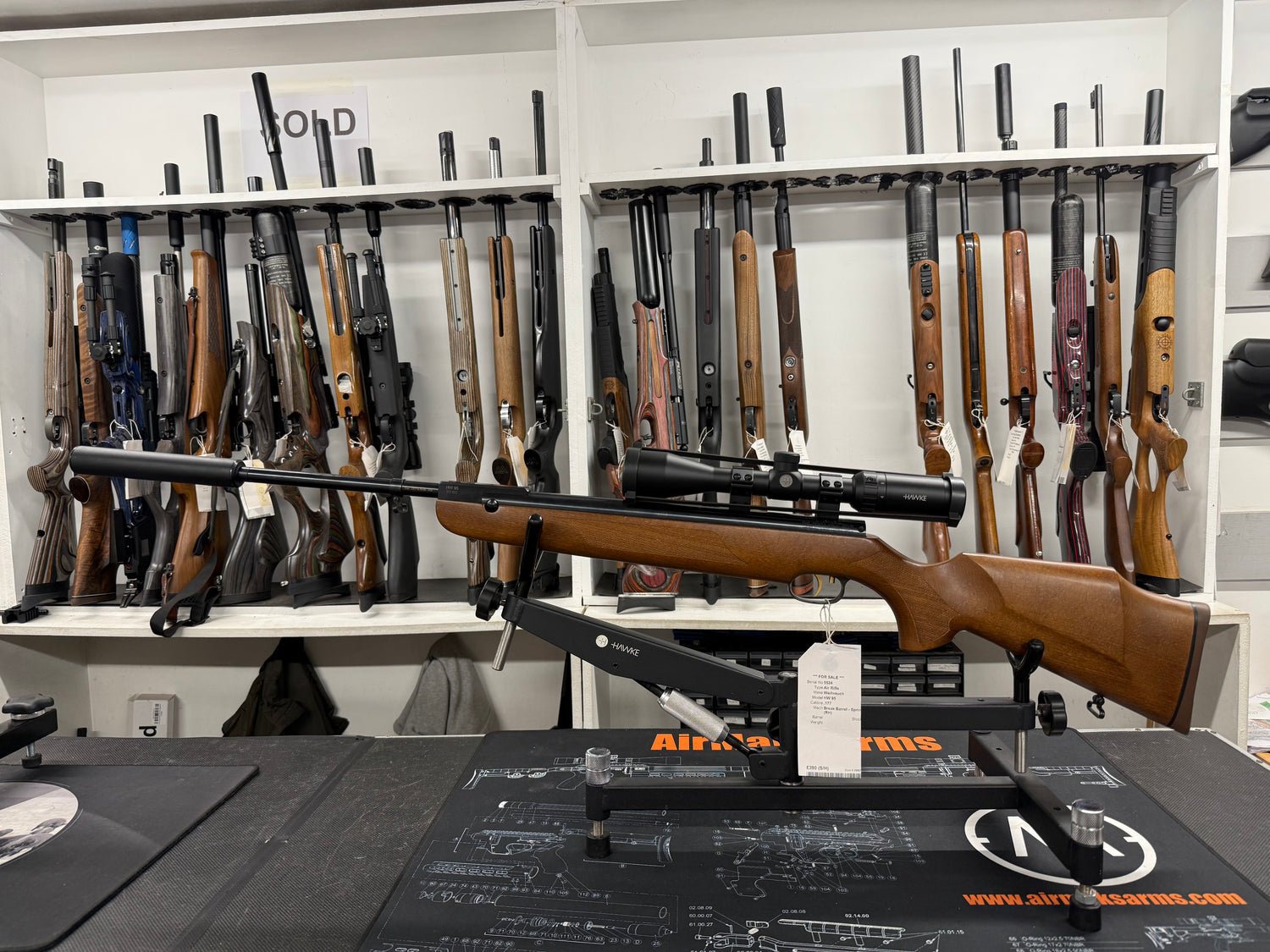 ALL SECOND HAND AIR RIFLES COME WITH 3 MONTHS WARRANTY Excellent condition and fully tested Weihrauch HW95K in .177. The gun features an ambidextrous beech stock and is fitted with a Hawke fast mount 3-9x40 AO scope, Weihrauch moderator and a set of sling swivels. |